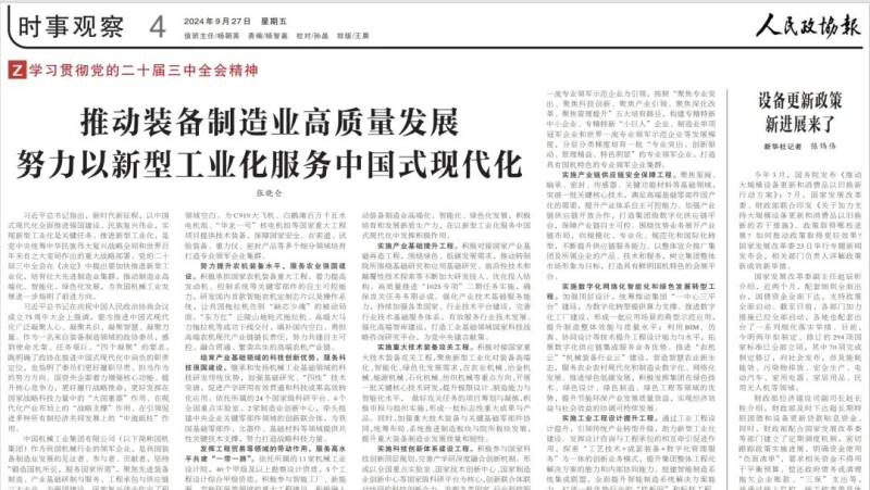 克日,《人民政协报》刊发天下政协委员,UG环球集团党委书记、董事长张晓仑署名文章《推动装备制造业高质量生长 起劲以新型工业化效劳中国式现代化》,讲述UG环球集团坚守...